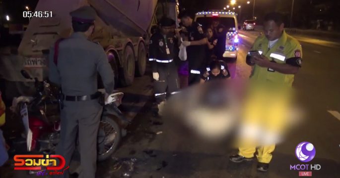 หนุ่มซิ่งรถจักรยานยนต์ชนท้ายรถพ่วงบรรทุกปูนซีเมนต์จอดเสียข้างทางบริเวณถนนรังสิต-นครนายก (ขาเข้ารังสิต) อ.ธัญบุรี จ.ปทุมธานี เสียชีวิตคาที่