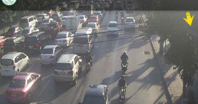 จราจรเช้าวันพฤหัสบดี ถนนดินแดง จากแยกใต้ด่วนดินแดง เข้าถนนราชวิถี – อนุสาวรีย์ชัยฯ รถมาก