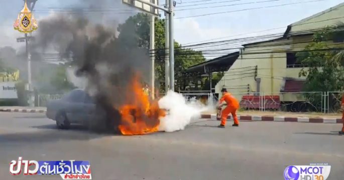เชียงใหม่ร้อนจัด! เกิดไฟไหม้รถยนต์จอดติดไฟแดงกลางสี่แยก