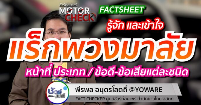 26 พฤศจิกายน 2567 – บนสังคมออนไลน์มีข้อสงสัยเกี่ยวกับ แร็กพวงมาลัยว่า มีหน้าที่อย่างไร แบ่งเป็นกี่รูปแบบ และมีความแตกต่างกันอย่างไร ติดตามข้อเท็จจริงและคำแนะนำจากผู้เชี่ยวชาญ ศูนย์ชัวร์ก่อนแชร์ ตรวจสอบกับ คุณสุรมิส เจริญงาม นักทดสอบและผู้เชี่ยวชาญเทคโนโลยียานยนต์ แร็คพวงมาลัยคืออะไร? 1. แบบ Worm and Pion (เฟืองแบบตัวหนอน) 2. แบบไฮดรอลิก (พาวเวอร์) 3. แบบไฟฟ้า สรุป : แร็กพวงมาลัยแต่ละแบบมีข้อดีข้อเสียแตกต่างกันไป ขึ้นอยู่กับการใช้งานและเทคโนโลยีในยุคนั้น ๆ สัมภาษณ์เมื่อ : 25 ตุลาคม 2567ตรวจสอบข้อเท็จจริงโดย : ณัฐพล อินทร์สวัสดิ์เรียบเรียงโดย : ชยานิษฐ์ ผ่องใส