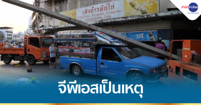 จีพีเอสเป็นเหตุ! นำคนขับรถสิบล้อล้อผ่ากลางเมืองแม่กลอง เกี่ยวสายไฟ ทำเสาไฟหักทับรถสองแถว ผู้โดยสารกระโดดหนีตายอลหม่าน