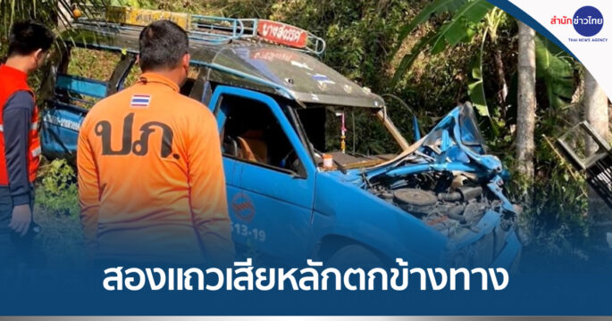 รถสองแถวนำนักท่องเที่ยวจาก อ.พระแสง และเวียงสระ เที่ยวชมอุทยานธรรมเขานาในหลวง อ.พนม จ.สุราษฎร์ธานี เสียหลักตกลงข้างทางขณะกำลังขึ้นภูเขา เสียชีวิต 1 คน และบาดเจ็บ 13 คน