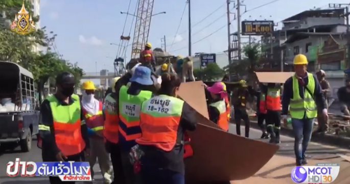 เจ้าหน้าที่เร่งเคลียร์ผิวจราจรแยกถนนรัชดาภิเษก-ท่าพระ หลังรถสิบล้อพลิกคว่ำ มีผู้เสียชีวิต 1 ราย บาดเจ็บ 1 ราย และมีก๊าซรั่วไหล