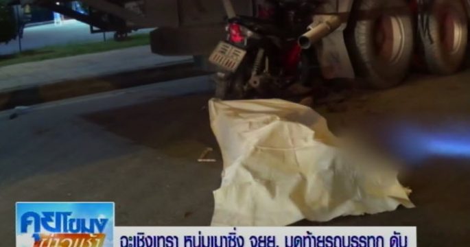 คนขับวัย 47 ปี จอดรถสิบล้อใส่เกียร์ค้างไว้ขณะลงจากรถแล้วเกิดเหตุไม่คาดฝันรถไหลพาร่างไปเบียดอัดรถแบ็กโฮจนเสียชีวิตย่านสมุทรสาคร