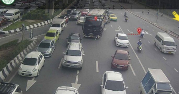 จราจรเช้าวันพุธ ถนนพหลโยธิน ขาเข้า ผ่านหน้า ม.ศรีปทุม รถมาก เคลื่อนตัวช้า