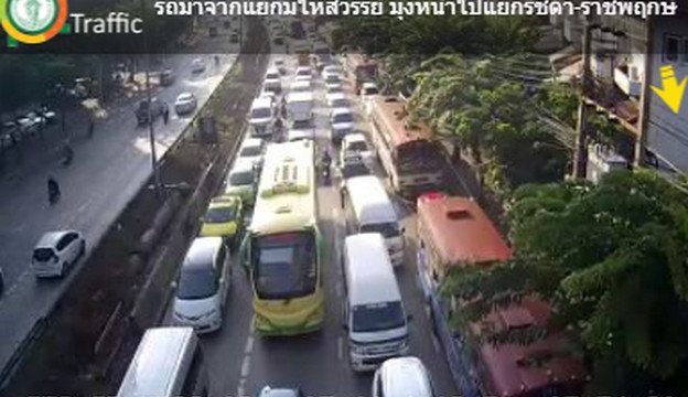 จราจรเช้าวันพุธ ถนนรัชดาภิเษก ขาเข้า มุ่งหน้าขึ้นต่างระดับรัชวิภา รถติดขัด ส่วนถนนประชาชื่น ขาเข้า มุ่งหน้าแยกประชานุกูล รถติดขัดมาก
