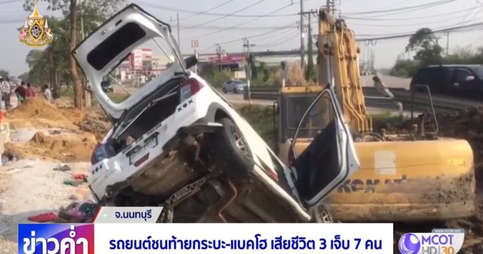 เกิดอุบัติเหตุรถเก๋งเสียหลักเสยท้ายกระบะ ก่อนพุ่งชนแบ็กโฮเต็มแรง มีผู้เสียชีวิต 3 ราย บาดเจ็บ 7 ราย
