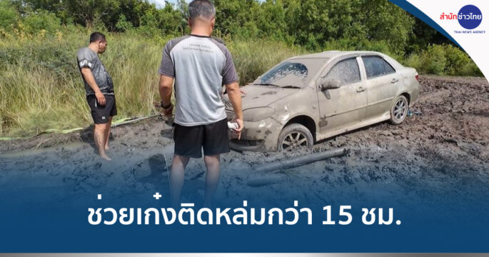 ฉะเชิงเทราฝนตกหนัก ทำรถเก๋งนักตกกุ้ง ติดหล่มกว่า 15 ชม.