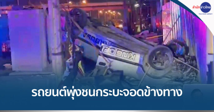 รถยนต์ 5 ประตู เสียหลักพุ่งชนกระบะจอดข้างทาง รถลอยขึ้นชนแท่งปูนขนาดใหญ่และเสาไฟฟ้า คนขับเก๋งเสียชีวิต ส่วนคนในรถบาดเจ็บ 4 คน
