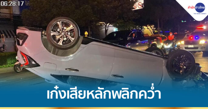 รถเก๋งเสียหลักพลิกคว่ำบนถนนรัชดาฯ ใกล้กับอุโมงค์ห้วยขวาง คนขับได้รับบาดเจ็บ กู้ภัยช่วยกันงัดประตูรถนำตัวส่งโรงพยาบาล