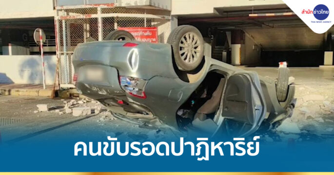 รถเก๋งขับลงจากลานจอดชั้น 2 ของศูนย์การค้าแห่งหนึ่ง อ.บางบัวทอง จ.นนทบุรี พุ่งชนกำแพงกั้น ก่อนทะลุกำแพงตกลงไปด้านล่าง คนขับรอดตายปาฏิหาริย์ ได้รับบาดเจ็บเล็กน้อย