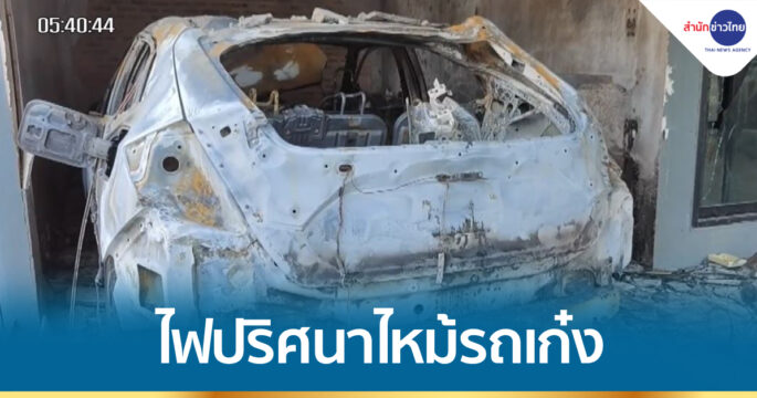 ไฟไหม้รถเก๋งจอดไว้ในบ้านเสียหายทั้งคัน โชคดีที่เจ้าหน้าที่ดับเพลิงควบคุมเพลิงไว้ได้ทัน ก่อนจะลามไหม้บ้านด้วย
