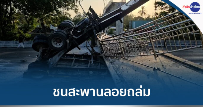 เจ้าหน้าที่เร่งเคลียร์สะพานลอย หลังเกิดเหตุรถเทรลเลอร์พุ่งชนจนถล่มลงมาปิดถนนสายเอเชีย พร้อมเปิดทางเลี่ยงสู่ภาคเหนือ
