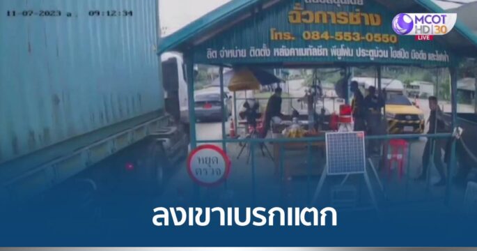 รถบรรทุกขับลงเขา เบรกแตก เสยท้ายป้ายแดง ก่อนพุ่งชนด่านความมั่นคง ถนนสายแม่สอด-ตาก ทั้งคนทั้งหมาวิ่งหนีกระเจิง ชาวบ้านวอนย้ายด่าน เพราะเกิดเหตุบ่อยครั้ง ตั้งชื่อ “ด่านตรวจวัดดวง”