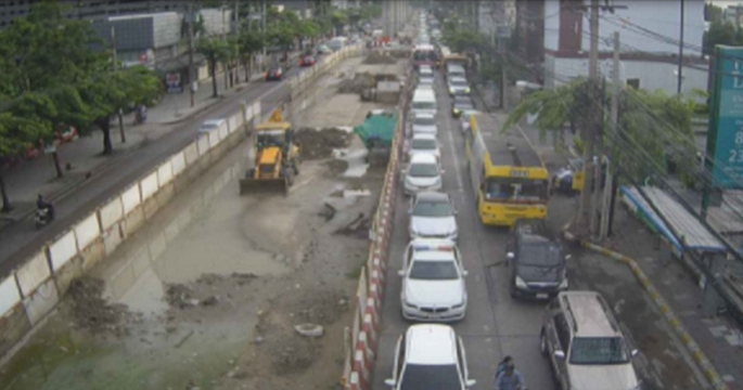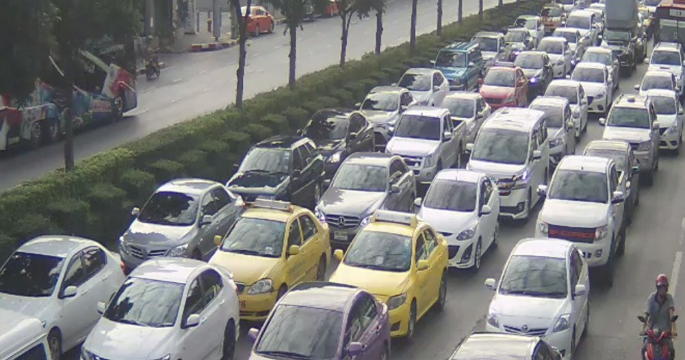 ถนนรัชดาภิเษก จากแยกเทียมร่วมมิตร มุ่งแยกพระราม9 เข้าถนนอโศกมนตรี รถมาก เคลื่อนตัวช้า
