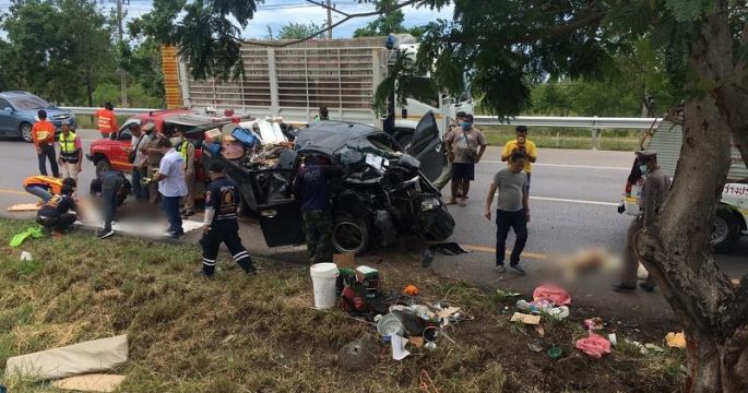สระบุรี 23 มิ.ย. – รถ SUV แหกโค้งเหินเกาะกลางถนน อ.เฉลิมพระเกียรติ จ.สระบุรี คนขับหลบหนี ตะลึงพบยาบ้าในรถ 3.2 ล้านเม็ด เมื่อคืนเวลา 21.30 น. เจ้าหน้าที่รับแจ้งเหตุ รถ SUV เกิดอุบัติเหตุเสียหลักแหกโค้งปีนเกาะข้ามถนนไปอีกฝั่ง ทำให้รถได้รับความเสียหาย ไม่สามารถขับขี่ต่อไปได้ จุดเกิดเหตุเป็นเส้นทางถนนหน้าพระลาน อ.เฉลิมพระเกียรติ จ.สระบุรี พบรถเชฟโรเลต สีแดง ทะเบียนกรุงเทพมหานคร สภาพชนเข้ากับขอบถนนซึ่งเป็นภูเขา รถได้รับความเสียหาย ยางแตก 3 เส้น ตรวจสอบเบื้องต้น ไม่พบผู้ขับขี่ คาดว่าจะหนีไป และภายในรถมีถุงปุ๋ยสีดำ 8 กระสอบ คลุมด้วยผ้าอยู่บริเวณด้านหลังคนขับ ตำรวจ สภ.หน้าพระลาน เข้าตรวจสอบ พบยาบ้าบรรจุอยู่ในกระสอบ จำนวน 3.2 ล้านเม็ด นอกจากนี้ยังพบอาวุธปืนสั้น ขนาด.380 ออโต้ 2 กระบอก พร้อมลูกกระสุนเต็มแม็ก ขึ้นลำไว้เรียบร้อยพร้อมยิง โทรศัพท์ […]