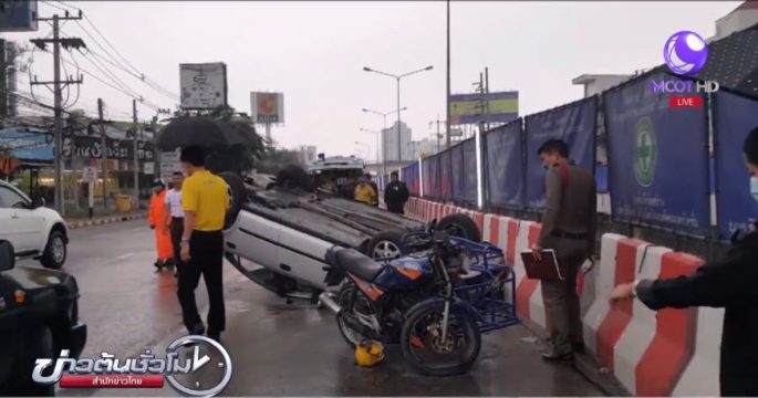 รถกระบะกลับจากงานเลี้ยงกลางคืนแฉลบทางโค้งถนนบางสะพาน-ประจวบฯ หญิงคนขับเสียชีวิต เพื่อนเจ็บ 2 ส่วนชลบุรีดับ 1 จยย.ชนเต็มแรงสามล้อเครื่อง เจ็บอีก 2