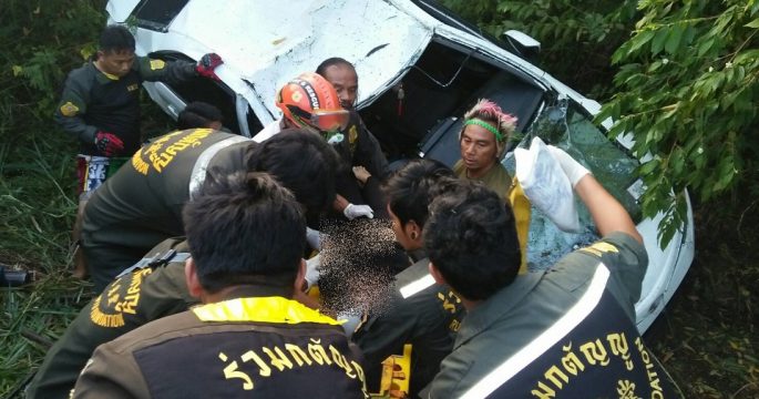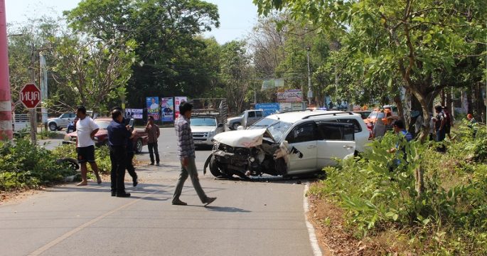 ทหารกะเหรี่ยงขับรถยนต์แหกโค้งชนต้นไม้เสียชีวิต 4 รายเจ็บสาหัสอีก 2 ราย บนถนนใกล้แนวชายแดนไทย-เมียนมา