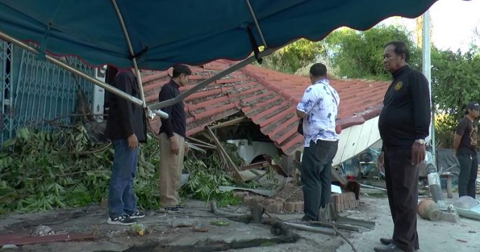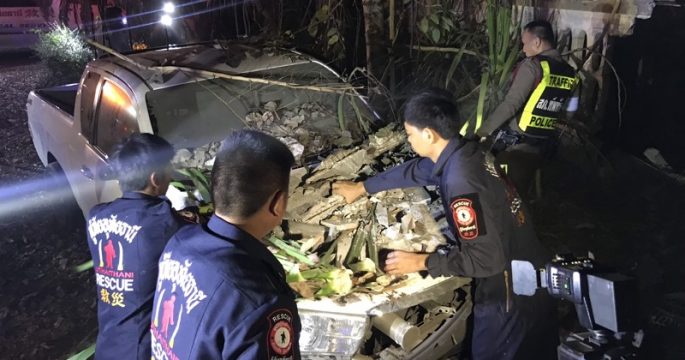 กระบะขับฝ่าสายฝนเสียหลักแหกโค้งพุ่งชนร้านขายของชำบริเวณถนนสายเอเชีย 41 พังเสียหาย โชคดีไม่มีผู้ได้รับบาดเจ็บ