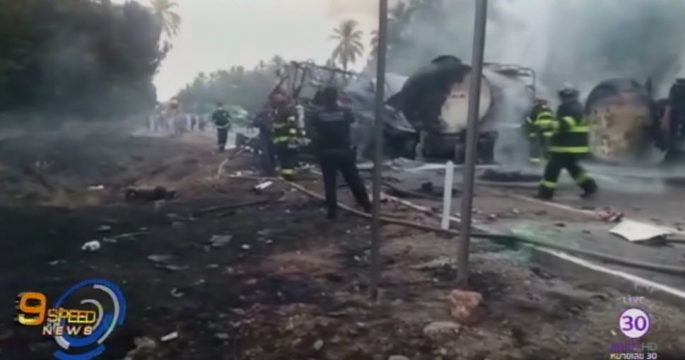 รถโดยสารกับรถบรรทุกน้ำมันชนประสานงากันอย่างแรง บนถนนสายหนึ่งในรัฐเกร์เรโรของเม็กซิโก และเกิดระเบิดไฟลุกท่วม มีผู้เสียชีวิตอย่างน้อย 24 ราย บาดเจ็บ 9 ราย