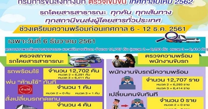 กรมการขนส่งทางบกเผยผลตรวจความพร้อมรถโดยสาร พบไม่พร้อมสั่งพ่นห้ามใช้ 1 คัน สั่งเปลี่ยนรถทันที 4 คัน