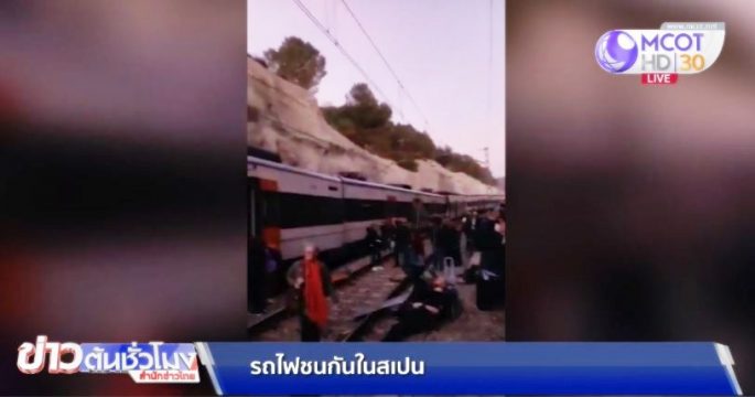เหตุรถไฟโดยสาร 2 ขบวน ชนประสานงาใกล้เมืองบาร์เซโลนาของสเปน เมื่อช่วงค่ำวานนี้ ทำให้มีผู้เสียชีวิตอย่างน้อย 1 คน บาดเจ็บราว 100 คน ส่วนมากเจ็บเล็กน้อย โดยมี 3 คน อาการสาหัส ส่วนสาเหตุที่ทำให้รถไฟชนกันยังอยู่ระหว่างสอบสวน