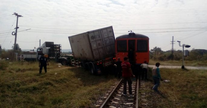 รถไฟชนรถพ่วง 18 ล้อ คาดสัญญาณขัดข้อง