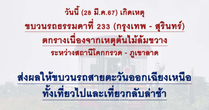 ประจวบคีรีขันธ์ 9 ส.ค.- รถไฟขบวนด่วนพิเศษ สุไหงโก-ลก – กรุงเทพอภิวัฒน์ ตกรางที่กุยบุรี มีผู้บาดเจ็บ 10 คน ส่วนสาเหตุตกรางอยู่ระหว่างสอบสวน เมื่อเวลา 05.20 น. วันนี้ (9 ส.ค.68) ตำรวจ สภ.กุยบุรี จ.ประจวบคีรีขันธ์ พร้อมกู้ภัยมูลนิธิหลวงพ่อในกุฏิ เข้าตรวจสอบอุบัติเหตุรถไฟตกราง มีผู้บาดเจ็บจำนวนมาก ที่เกิดเหตุอยู่ห่างจากสถานีรถไฟกุยบุรี ประมาณ 100 เมตร พบรถไฟขบวนด่วนพิเศษ ขบวนที่ 38/46 สุไหงโก-ลก – กรุงเทพอภิวัฒน์ จอดอยู่ที่สถานี โดยตู้นอนแอร์ 3 ตู้ท้ายขบวน ตกรางและหลุดจากขบวน ได้รับความเสียหาย และมีผู้บาดเจ็บรวม 10 คน กู้ภัยนำส่ง รพ.กุยบุรี และขนถ่ายผู้โดยสาร 3 ตู้ ที่ตกราง ขึ้นรถทัวร์เดินทางต่อ ส่วนตู้โดยสารที่ไม่ได้ตกราง เดินทางต่อจนถึงสถานีปลายทางกรุงเทพอภิวัฒน์ ต่อมา นายสิทธิชัย สวัสดิ์แสน […]