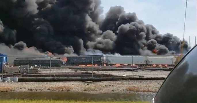 อพยพคนหนีหลังรถไฟตกรางในอิลลินอยส์และสารเคมีไฟลุกท่วม