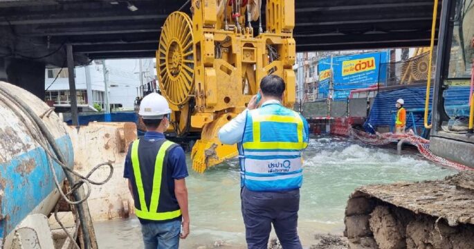 กรุงเทพฯ 27 ส.ค. – การประปานครหลวง (กปน.) แจ้งวันนี้ 27 สิงหาคม 2568 เวลา 13.00 น. เกิดเหตุท่อประปาแตกรั่วจากอุบัติเหตุ งานก่อสร้างรถไฟฟ้าใต้ดินสายสีส้ม บริเวณกลางสี่แยกราชปรารภ ซึ่งอยู่ภายในบริเวณพื้นที่ก่อสร้าง เจ้าหน้าที่อยู่ระหว่างการประเมินการแก้ไข เบื้องต้นจำเป็นต้องเร่งปิดประตูน้ำท่อประปา เพื่อไม่ให้น้ำท่วมผิวถนน ทั้งนี้ กปน.ขออภัยในเหตุการณ์ที่เกิดขึ้น มา ณ ที่นี้ สำหรับผลกระทบด้านการให้บริการน้ำประปา จะแจ้งให้ทราบต่อไป ติดตามความคืบหน้าในเพจ MWAthailand. -511-สำนักข่าวไทย