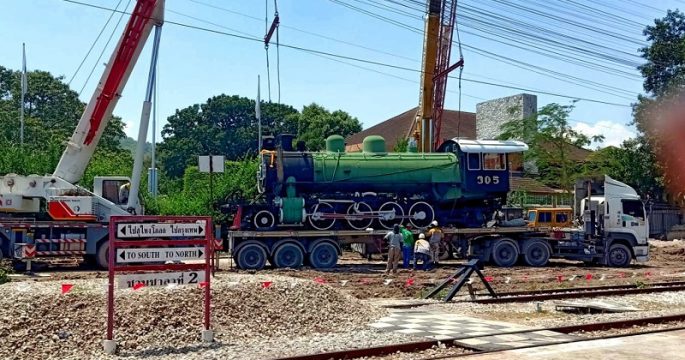 เรื่องประหลาดใจ เคลื่อนย้ายหัวรถจักรโบราณ หน้าสถานีรถไฟหัวหิน เตรียมก่อสร้างรถไฟรางคู่นครปฐม-หัวหิน รถเครนสตาร์ทไม่ติด สุดท้ายต้องจุดธูปบอกกล่าวขออนุญาต ก่อนดำเนินการได้เรียบร้อย
