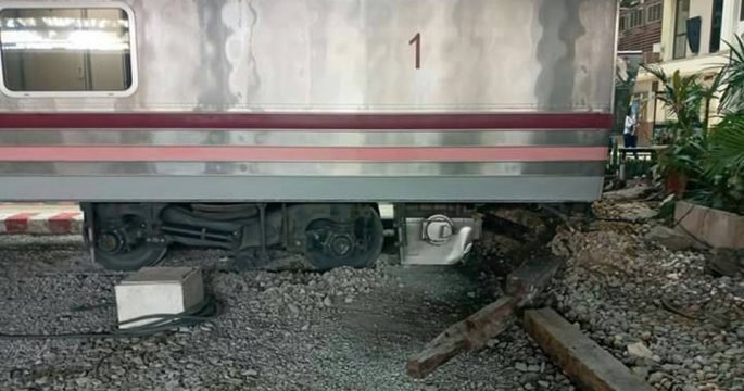 เกิดเหตุขบวนรถไฟ 32 ถอยตั้งขบวนหลุดพ่วงตกรางที่สถานีหัวลำโพง ล่าสุดฝ่ายช่างเข้าเคลียร์พื้นที่แล้ว