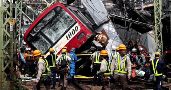 เกิดอุบัติเหตุรถไฟด่วนที่แล่นมาด้วยความเร็วราว 120 กิโลเมตรต่อชั่วโมงชนกับรถบรรทุกคันหนึ่งที่จุดตัดทางรถไฟทางตอนใต้ของกรุงโตเกียวในช่วงเที่ยงวันนี้