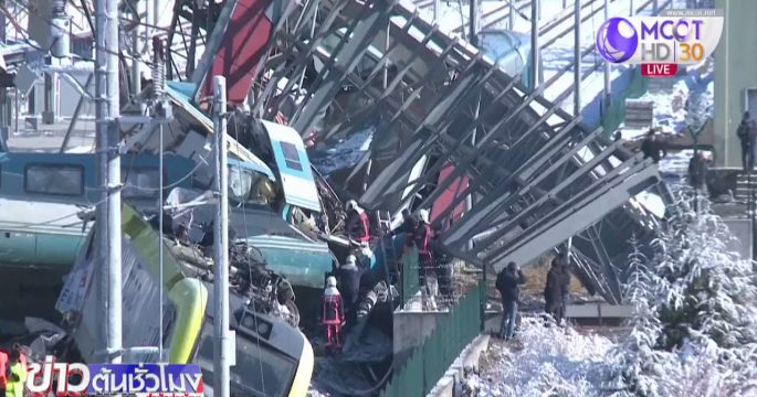 ภาพที่บันทึกจากกล้องวงจรปิดเผยให้เห็นวินาทีที่รถไฟความเร็วสูงพุ่งชน ประสานงากับหัวรถจักรรถไฟ ก่อนจะตกรางที่สถานีรถไฟชานกรุงอังการาของตุรกี ทำให้มีผู้เสียชีวิต 9 คนและบาดเจ็บ 86 คน