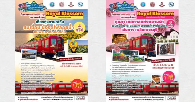 การรถไฟฯ เปิดปฏิทินท่องเที่ยวทางรถไฟต้อนรับปี 68 ตลอดเดือนมกราคม – กุมภาพันธ์ เริ่มขายตั๋ว 11 ม.ค.68 พร้อมกันทั่วประเทศ