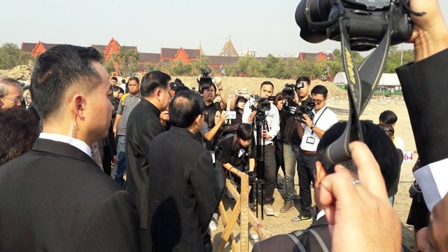 รองนายกฯ นำคณะ ตรวจความคืบหน้าการจัดสร้างพระเมรุมาศครั้งแรก เทปูนฐากราก ตั้งโครงเหล็กตัวอาคารพระเมรุมาศ รับพิธียกเสาเอกในวันที่ 27 ก.พ.