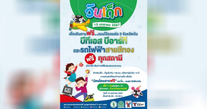 รองโฆษกรัฐบาลเผย รถไฟฟ้าBTS ทุกเส้นทาง รวมทั้งสายสีทอง และBRT เปิดให้เด็กใช้บริการฟรีตลอดสายเนื่องในวันเด็กแห่งชาติ