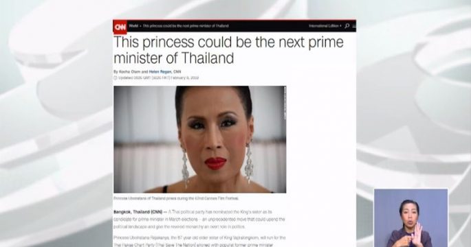 สำนักข่าวต่างประเทศพากันเสนอข่าวความเคลื่อนไหวทางการเมืองในไทย หลังมีพระราชโองการ เรื่องการเสนอพระนามทูลกระหม่อมหญิงอุบลรัตนฯ ลงชิงตำแหน่งนายกรัฐมนตรี