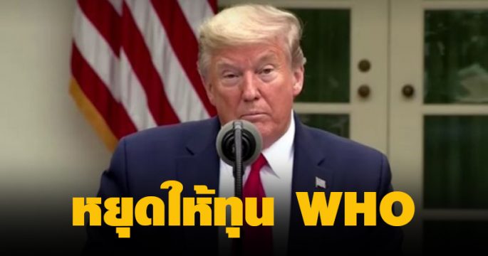 ผู้นำสหรัฐ ระงับการให้เงินช่วยเหลือองค์การอนามัยโลก โดยอ้างว่า องค์การอนามัยโลก ล้มเหลวในการจัดการกับการแพร่ระบาดโควิด-19