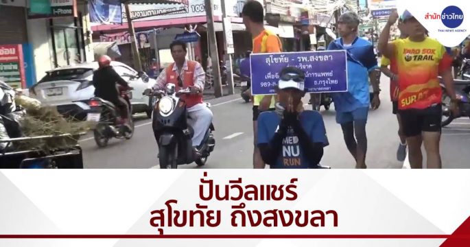 “ลุงหมี” ชายพิการขาอ่อนแรง ชาวพิษณุโลก ปั่นวีลแชร์จากสุโขทัย ปลายทางสงขลา ระดมทุนช่วยซื้ออุปกรณ์การแพทย์ รพ.สงขลา เดินทางถึงปลายทางแล้ว และเตรียมมอบเงินบริจาคให้โรงพยาบาลกว่า 3 แสนบาท