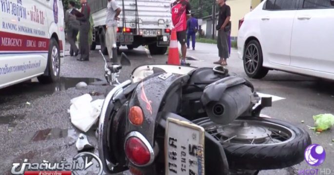 รถบรรทุก 6 ล้อ พุ่งชนรถจักรยานยนต์อย่างแรง บริเวณสี่แยก ป้อมซอย 7 เขตเทศบาลเมืองระนอง ทำให้คนขี่รถจักรยานยนต์เสียชีวิตทันที