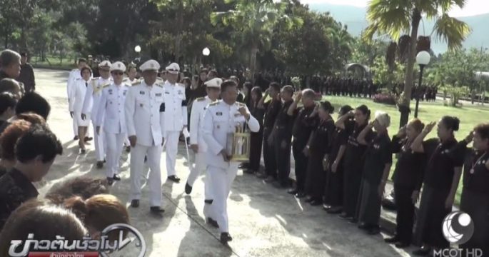 ผู้ว่าราชการจังหวัดระนอง อัญเชิญไฟหลวงพระราชทาน เดินทางจากทำเนียบรัฐบาล มาถึงศูนย์ราชการจังหวัดระนอง สำหรับใช้ในการพระราชพิธีถวายพระเพลิงพระบรมศพฯ