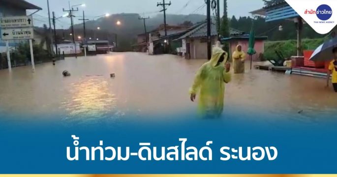 ฝนตกหนัก น้ำล้นตลิ่งทะลักท่วม 5 อำเภอ จ.ระนอง ชาวบ้านขนของหนีน้ำไม่ทัน นอกจากนี้ยังเกิดดินสไลด์ปิดถนนเข้าเมือง
