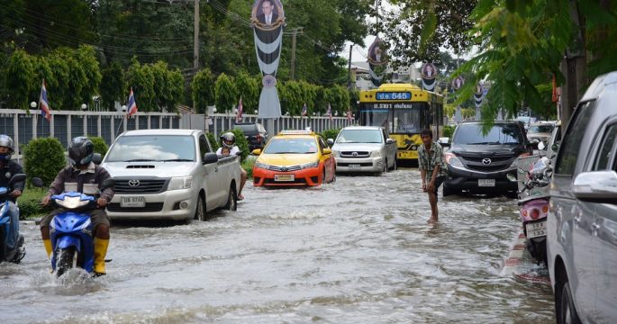 ถนนตัวเมืองโคราชน้ำท่วมขังรอระบายหลายเส้นทาง หลังฝนตกหนักตลอดคืน วัดปริมาณน้ำฝนได้ 141 มิลลิเมตร