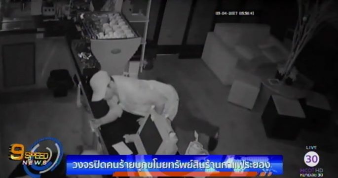วงจรปิดคนร้ายบุกขโมยทรัพย์สินร้านกาแฟระยอง