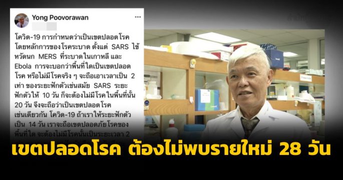 “นพ.ยง” ประกาศเขตปลอดโรคโควิด-19 ต้องไม่พบรายใหม่ 28 วัน