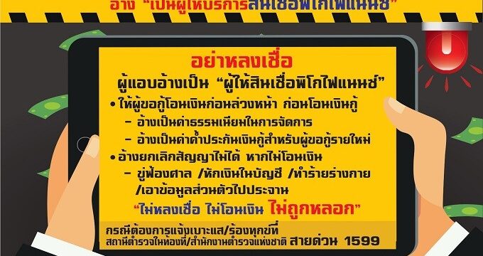 คลังเตือนภัย! ระวังมิจฉาชีพแอบอ้างปล่อยเงินกู้ แนะเช็กข้อมูลก่อนทำธุรกรรม ย้ำ ต้องไม่เอาเปรียบผู้กู้ โอนเงินค่าธรรมเนียม เรียกเงินค้ำประกัน ก่อนได้รับเงินกู้