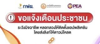 กรุงเทพฯ 9 มิ.ย.-การไฟฟ้าฝ่ายผลิตแห่งประเทศไทย (กฟผ.) การไฟฟ้านครหลวง (กฟน.) และ การไฟฟ้าส่วนภูมิภาค(กฟภ.) เตือนภัย อย่าหลงเชื่อ! ผู้แอบอ้างชื่อหน่วยงาน หรือแอบอ้างเป็นพนักงาน ชักชวนลงทุน ระวังเป็นเหยื่อมิจฉาชีพ!