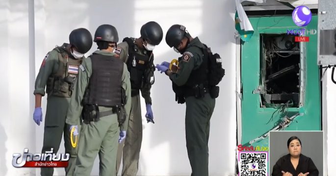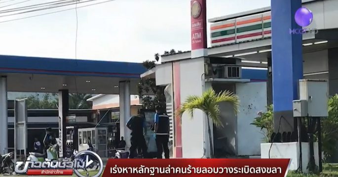 ชุดเก็บกู้วัตถุระเบิด ตำรวจ และฝ่ายปกครอง เข้าตรวจสอบบริเวณคนร้ายลอบวางระเบิดตู้เอทีเอ็ม ธ.ออมสิน ภายในปั๊มน้ำมัน ต.สะกอม อ.เทพา จ.สงขลา