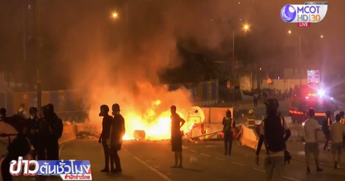 ทางการฮ่องกงแจ้งว่า มีผู้ขว้างระเบิดเพลิงภายในสถานีรถไฟฟ้าแห่งหนึ่งบนเกาะเกาลูน ทำให้สถานีเสียหายหนักแต่ไม่มีผู้บาดเจ็บ
